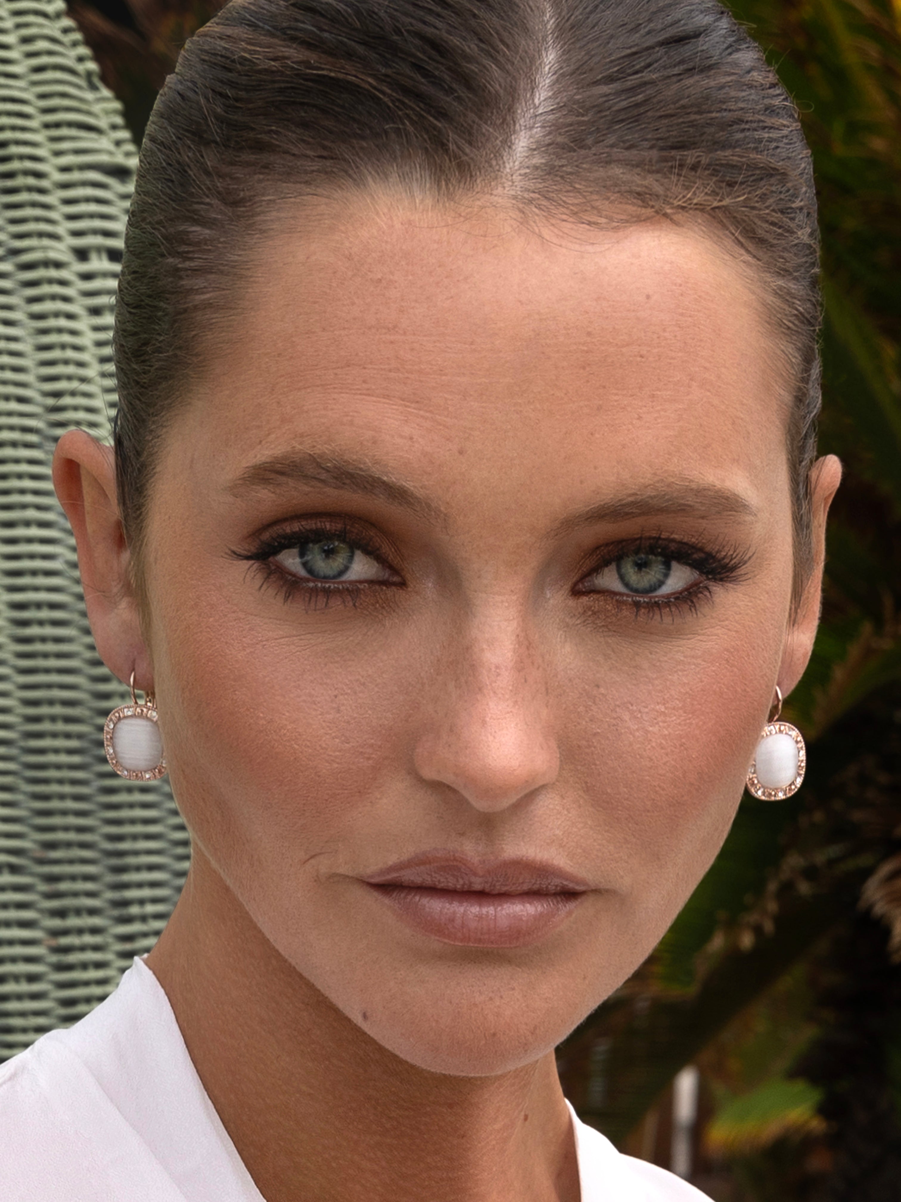 Make a statement with Prima Donna Earrings. These white cat eye studs sparkle with cubic zirconia stones and gleam in rose gold plating. Lightweight French hooks provide all-day comfort. A timeless piece that works for any occasion.