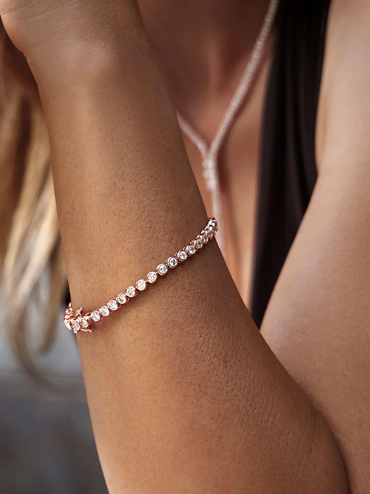 Uzlabojiet savu juvelierizstrādājumu kolekciju ar mūsu izsmalcināto sudraba 925 tenisa aproci. Rozā zeltītais dizains piešķir izsmalcinātību, savukārt drošā slēdzene nodrošina bezrūpīgu nodilumu. Šī rokassprādze ar dzirkstošiem cirkoniem ir ideāls elegances un šarms līdzsvars.