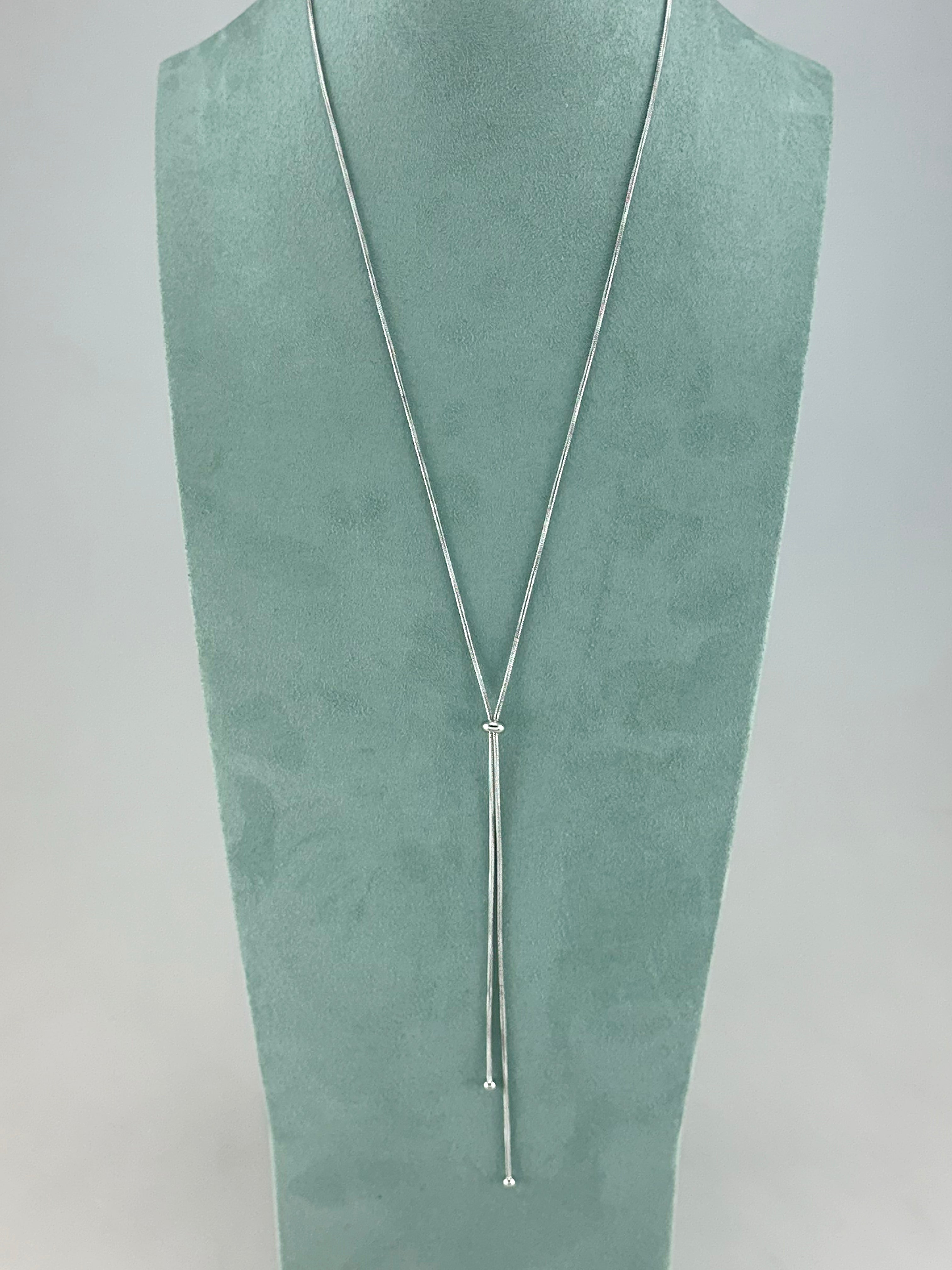 Y veida kaklarota ar čūskas formas ķēdīti, pārklāta ar rodija pārklājumu. Ar bīdāmu detaļu kas pielāgojama garuma un drapējuma veidošanā. Var valkāt gan slāņos, gan atsevišķi.