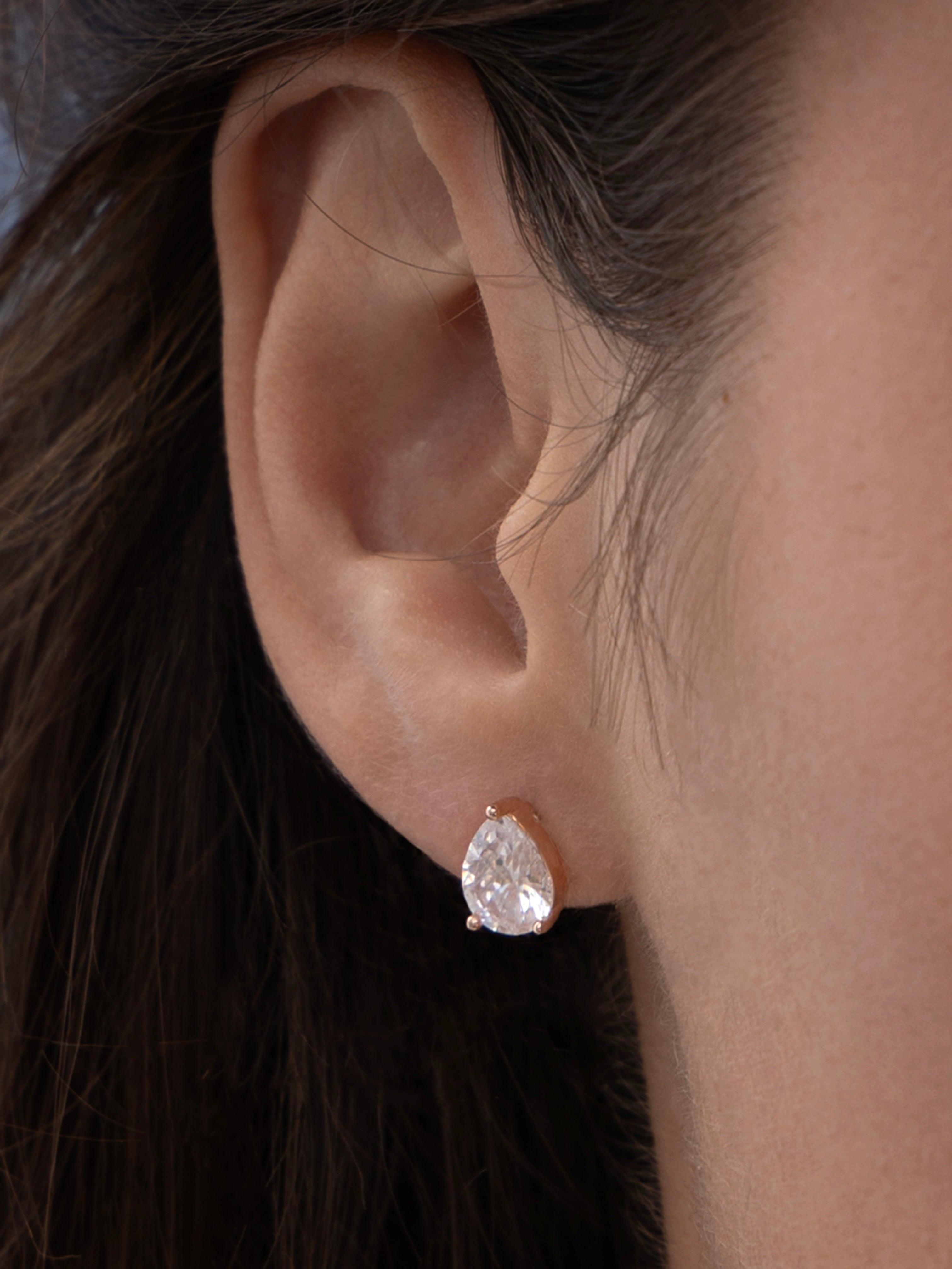 Radi neuzkrītošu tēlu ar šiem mirdzošajiem cirkonija auskariem. Katrs 8 x 6 mm akmens mirdz ar patiesu spožumu, ko papildina grezns rozā zelta pārklājums, kas izcels tavu dabisko mirdzumu.