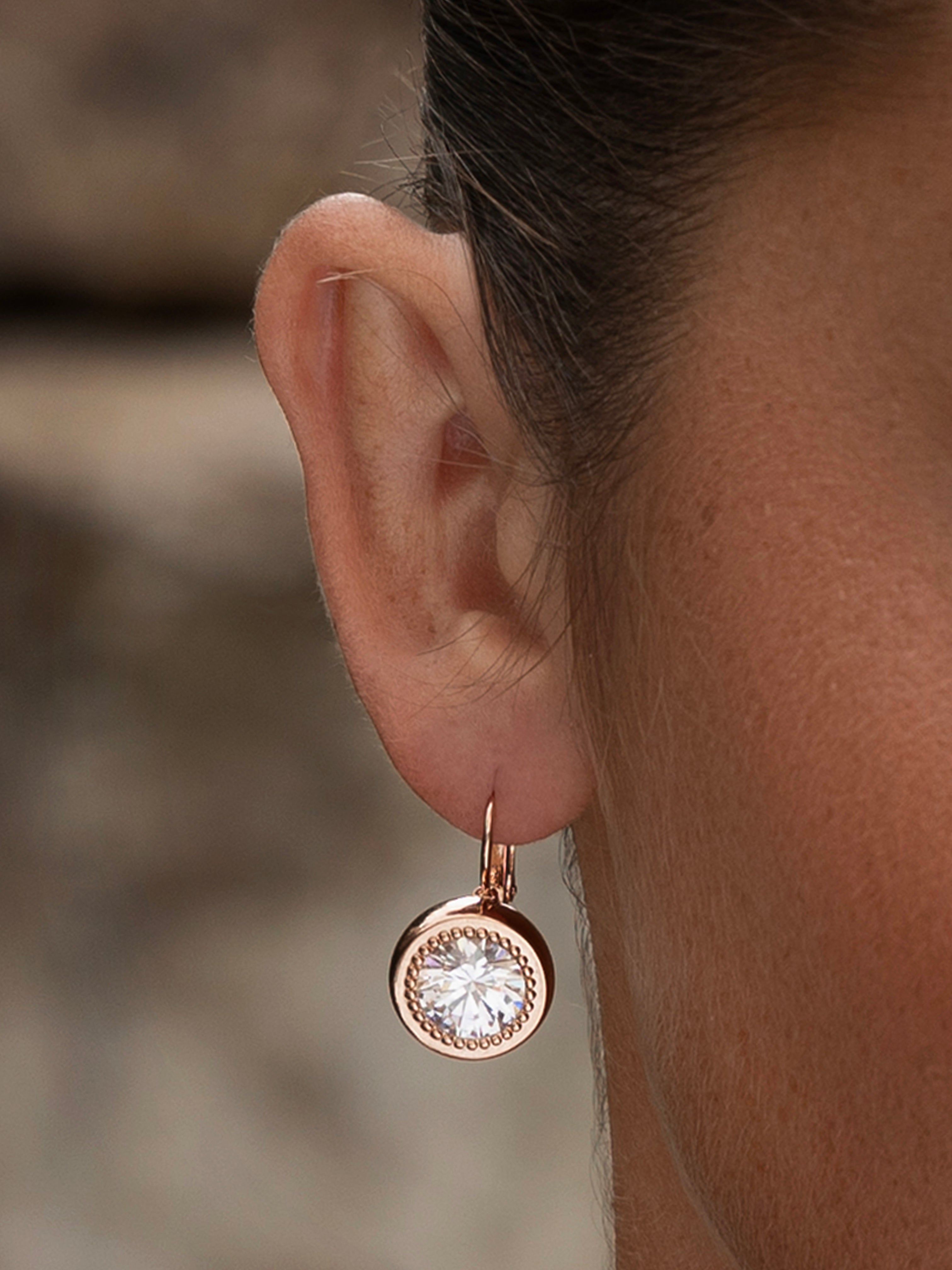 The Starlet Earrings combine rose gold-plated brass with a secure French hook and a 10 mm zircon for a refined, radiant touch. Lightweight and elegant, they suit both daily wear and special moments with ease.